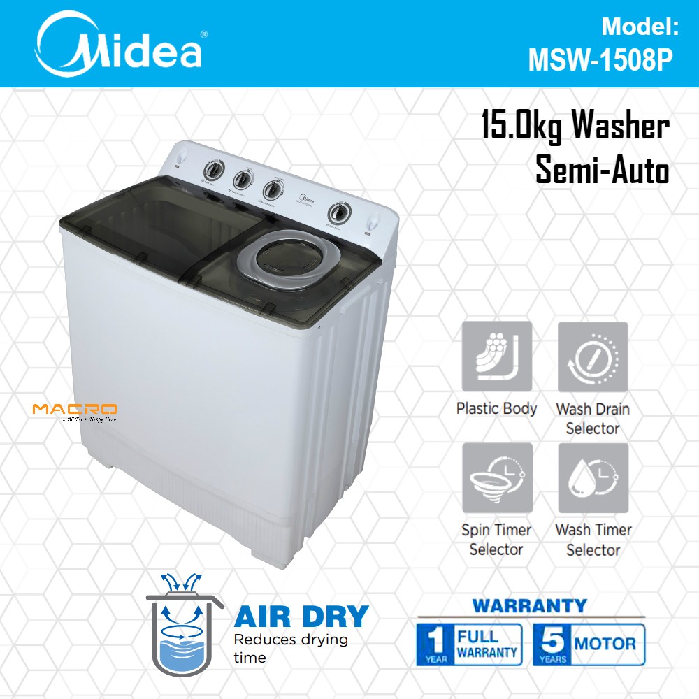 Midea 9kg 11kg 13kg 15kg Semi Auto Washing Machine Mesin Basuh Shopee Malaysia