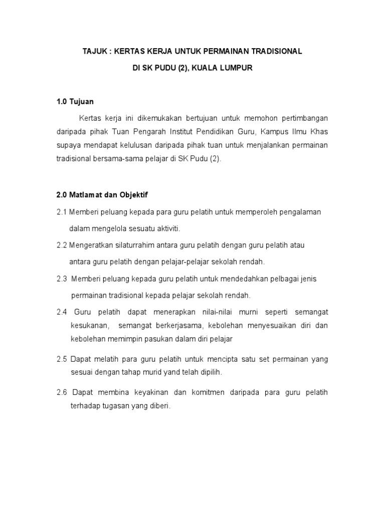 Pdf Contoh Kertas Kerja Permainan Tradisional Katerina Boniface Academia Edu