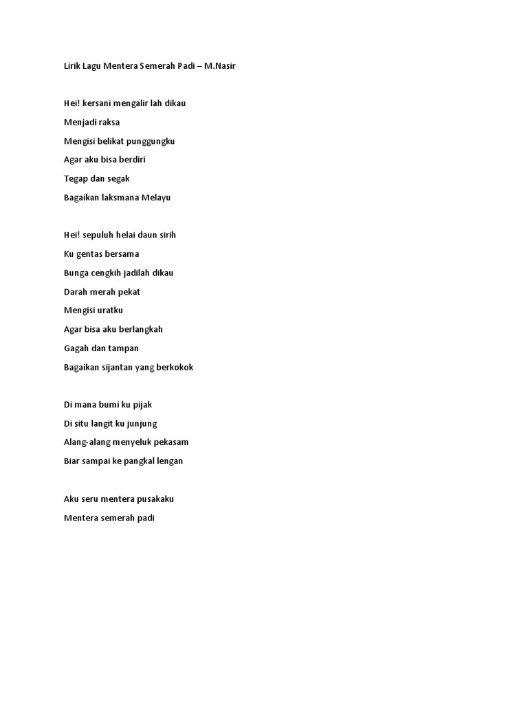 Mantera Semerah Padi Lirik Docx