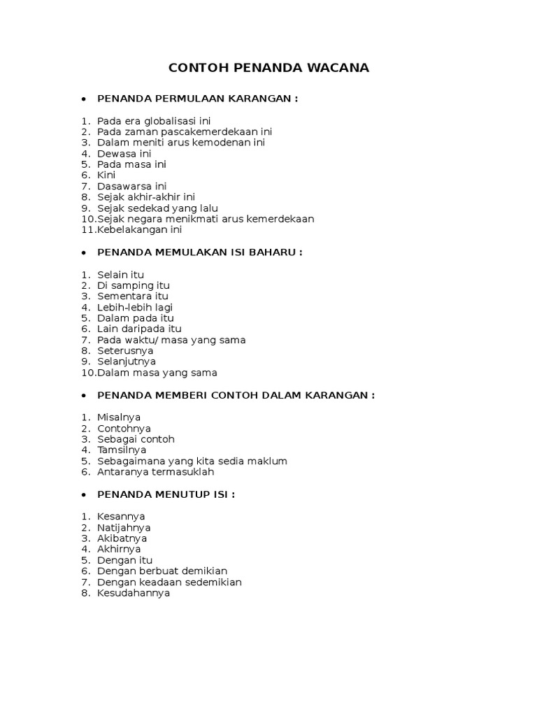 Contoh Penanda Wacana Bahasa Melayu