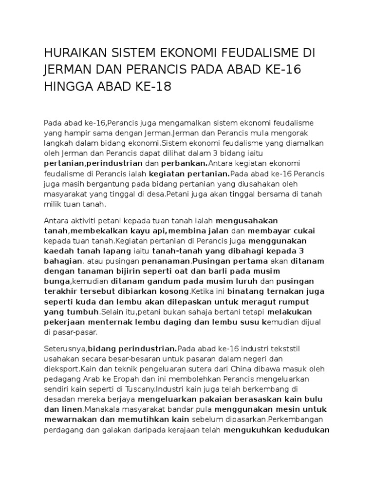 Huraikan Sistem Ekonomi Feudalisme Di Jerman Dan Perancis Pada Abad Ke 16 Docx Document